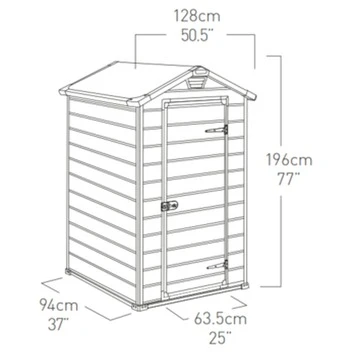De grote deur met stevige scharnieren is afsluitbaar met een hangslot (niet meegeleverd), zo blijven al uw opgeborgen spullen achter slot en grendel.De buitenafmeting (B x D x H) is 117 x 94 cm x 193 cm, de binnenafmeting is (B x D x H) 111 x 90 x 190cm. Na levering kan het Keter Manor 43 kunststof tuinhuis direct worden opgebouwd, mits een vlakke ondergrond is voorbereid. Twee personen zijn er ongeveer 2-3 uur mee bezig om het Keter huisje op te bouwen. Het Factor tuinhuis is onderhoudsvrij en eenvoudig te reinigen. Kortom, met de koop van deze prachtige Keter Manor 43 tuinhuis heb je op betaalbare wijze een onverwoestbare en praktische extra opbergruimte in je tuin